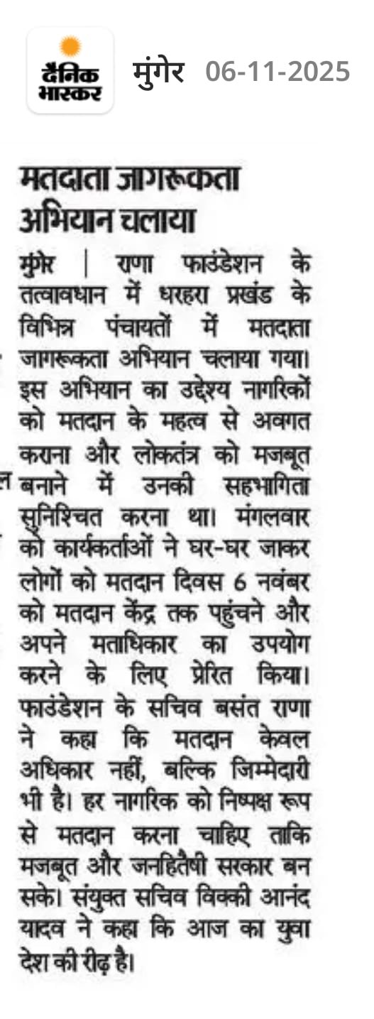 The Rana Foundation is a dedicated social welfare trust established with a vision to foster a better society through a variety of initiatives focused on social welfare and education. Founded by Mr. Basant Kumar Rana on February 17, 2023, the foundation operates under the Indian Trust Act and is headquartered in Jamalpur, Munger, in the Munger district of Bihar. The Rana Foundation’s mission is to address pressing social issues and provide educational opportunities for underserved communities, striving to create a more equitable society where everyone has access to basic necessities and the chance to transform their lives through education.